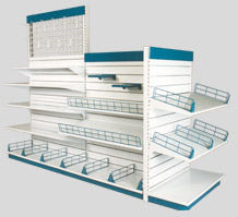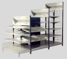 Versi-Store is a classic gondola design with many added features. This system provides unlimited configurations of shelving and add-on units. Versi-Store can be assembled with Trakwall, slatgrid, and any number of customized perforated add-on panels.
