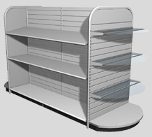 Radius redefines the original System90 fixturing concept with its arcing wall and mitered merchandisers complete with downsloped shelves. Specially curved appointments are also added to its feature ends, focus units and four ways. Like System90, Radius features a boltless, knock down modular design for easy installation and it accepts all of System90's shelves, back panels and specialty accessories to meet your specific merchandising needs.